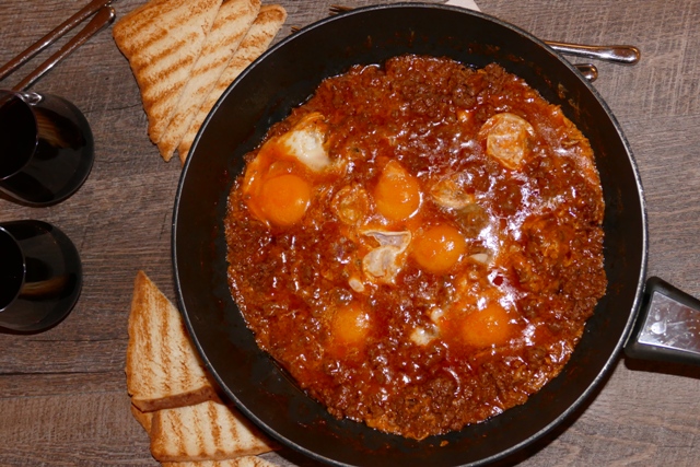 Προσθέτουμε και τα αυγά και τα αφήνουμε να σιγοψηθούν όσο θέλουμε (ανάλογα με το πως τα προτιμάμε). Ρίχνουμε και το τυρί και το αφήνουμε άλλο 1′ να λιώσει. Σερβίρουμε αμέσως με μπόλικο φρυγανισμένο ψωμί.